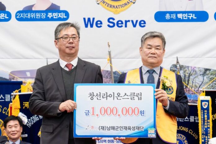 11월 1일 국제라이온스협회 355-E지구 5지역 창선라이온스클럽에서 제19회 하동남해 지역대회를 개회하며 인재육성기금 100만 원을 기탁하였다. 본 단체는 면 단위의 봉사단체로 ‘우리는 봉사 한다.’라는 대명제 아래 지역사회와 가까워지기 위한 노력의 일환으로 생활개선, 사회복지 등에 관심을 두고 꾸준한 봉사활동을 펼치고 있다. 이번 지역대회에서는 인재육성기금뿐만 아니라 이웃돕기성금도 함께 기탁했다.