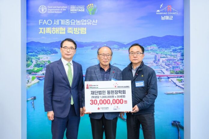 [경상뉴스=이경용 기자]경남 남해군은 지난 2일 재단법인 동헌장학회(회장 강진용)가 저소득층 학생들을 위한 장학금 3천만 원을 기탁했다고 밝혔다.
