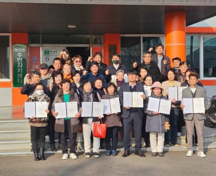 이에 정종국 면장은 “하이면을 위해 항상 힘써주시는 위원들께 감사드리며, 하이면 주민자치회의 발전을 위해 행정에서도 적극적으로 발맞추겠다”고 화답했다.
