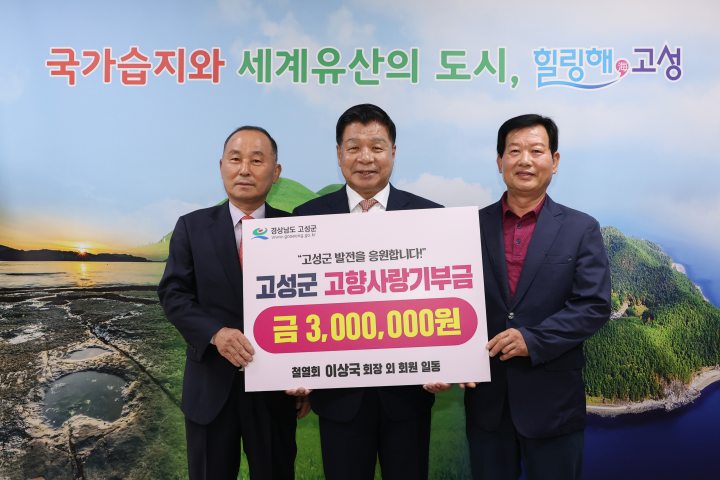 [경상뉴스=김용수 대기자]경남 고성군(군수 이상근)은 11월 7일, 철열회(부산, 창원 거주 철성고 10회 졸업생 모임) 이상국 회장 외 회원 일동이 고향사랑기부금 300만 원을 기탁했다고 밝혔다.