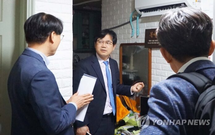▲천영길 산업통상자원부 에너지정책실장이 18일 서울 강남구 개포동 인근 빌라를 방문해 ‘저소득층 에너지 효율 개선사업’ 일환으로 여름철 폭염 대비 고효율 냉방기기(벽걸이 에어컨) 지원 현장을 점검하고 있다. 2023.5.18 [산업통상자원부 제공]