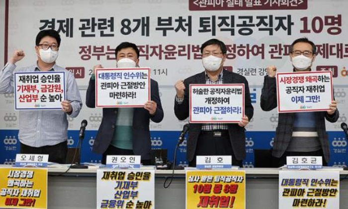 경실련은 관피아 근절 방안으로 △신생 기관 재취업 금지 명문화 △취업 승인 예외 사유 구체화 △퇴직 후 취업제한 기간을 현행 3년에서 5년으로 확대 △공직자윤리위원회 위원 명단과 회의록, 심사 결과 자료 공개 등을 제안했다.