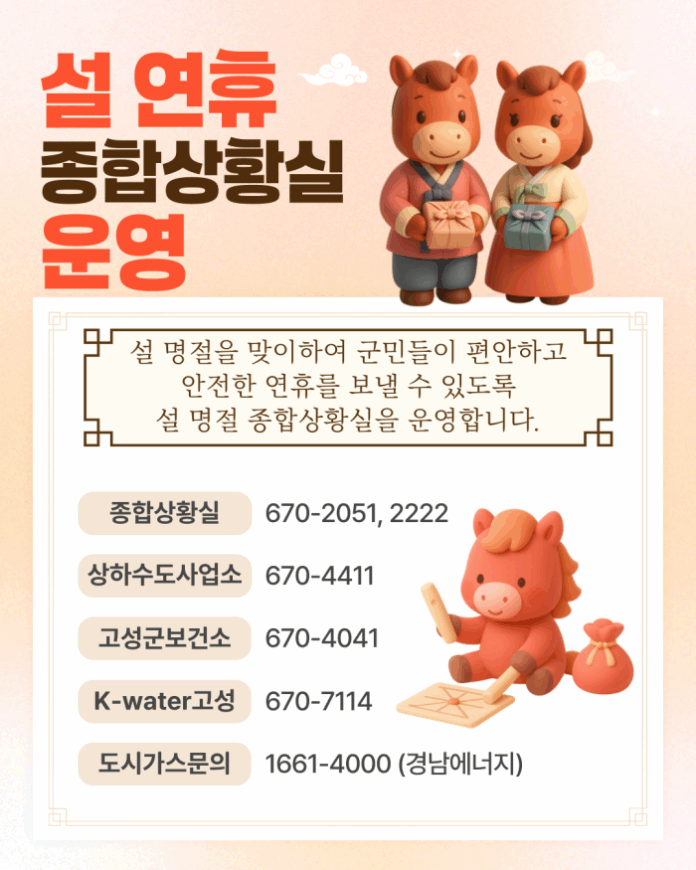 설 연휴에도 고성군의 공공서비스는 멈춤 없이 제공된다.