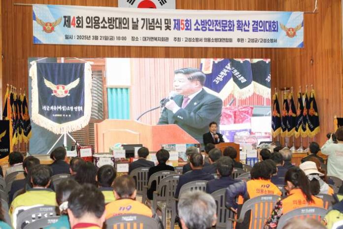 [경상뉴스=김용수 대기자]경남 고성군(군수 이상근)은 지난 21일 「제4회 의용소방대의 날」을 맞아 대가면 복지회관에서 열린 기념행사에 참석하여 고성군 의용소방대원들의 헌신과 노고를 격려하였다.