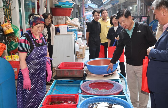 [경상뉴스=김용수 대기자] 이상근 고성군수가 6일 고성시장에서 ‘수산물DAY’ 장보기 행사를 가졌다.