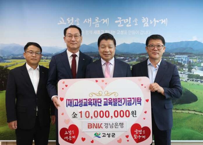 BNK경남은행은 경남 지역을 대표하는 은행으로, 매년 취약계층을 위해 기부활동을 펼치는 등 지역사회 환원 활동에 앞장서고 있으며, 고성교육재단에도 꾸준히 교육발전기금을 기탁해오고 있다.