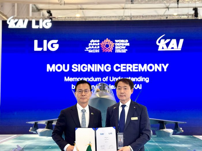 KAI는 LIG넥스원, 한화에어로스페이스와 각각 사우디아라비아 리야드에서 진행 중인‘제3회 세계방산전시회’(World Defense Show 2026)에서 KF-21과 FA-50의 수출경쟁력을 높이기 위한 국산 항공 무장 개발 및 통합, 공동마케팅 등의 내용을 담은 양해각서(MOU)를 체결했다고 11일 밝혔다.